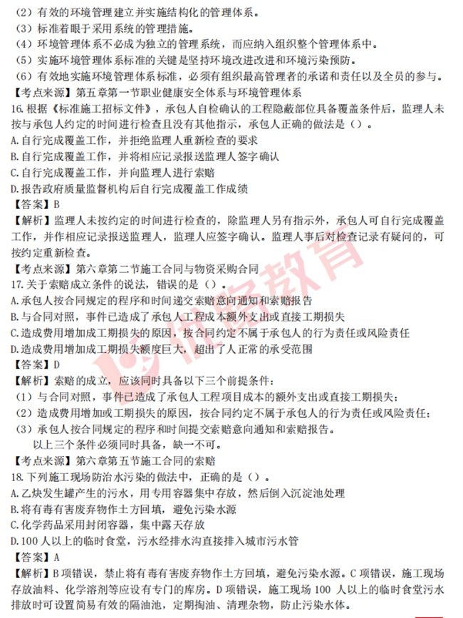 2022年二级建造师《施工管理》真题及解析11-20题(2天3科)