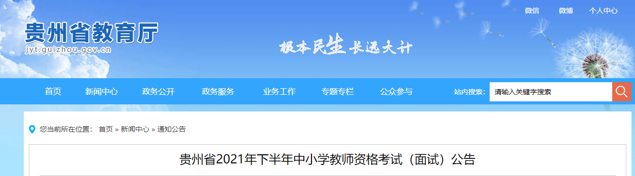 贵州2021年下半年教师资格证面试考试时间