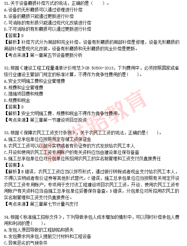 2021年一建《工程经济》考试真题及答案解析(31-40题)