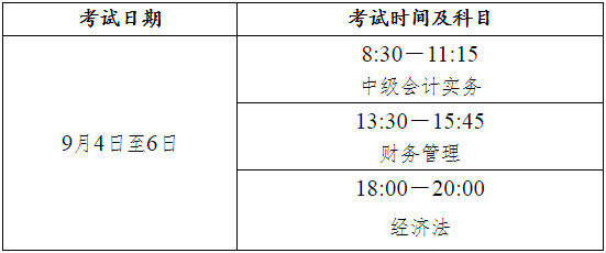 中级资格考试于2021年9月4日至6日举行,共3个批次,各科目具体考试时间如下: