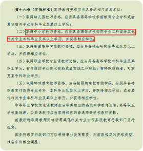 •第十六条(学历标准) 对取得教师资格应当具备的相应学历学位做出调整。