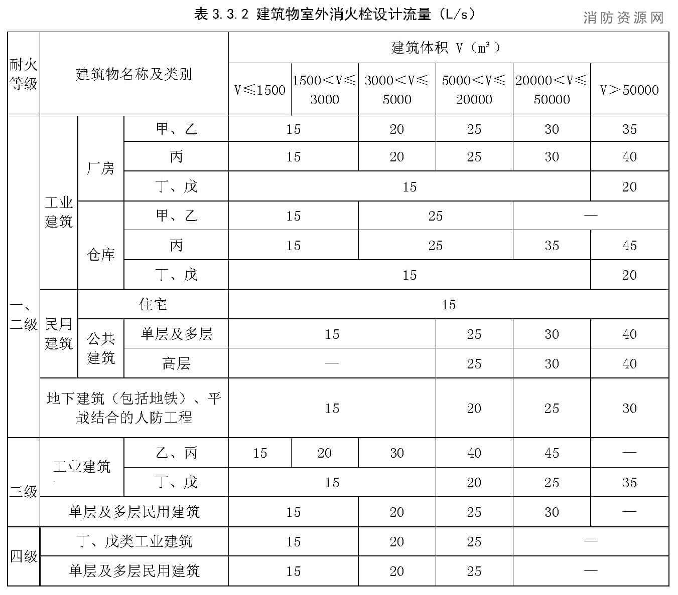 1自动消防炮灭火系统中单台炮的流量,对于民用建筑,不应小于20L/s;对于工业建筑,不应小于30L/s。