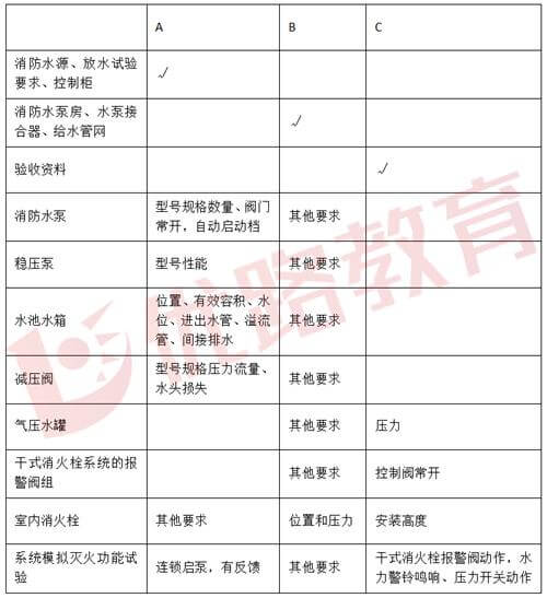 8.0.6-3分别开启系统中的每一个末端试水装置和试水阀,水流指示器、压力开关等信号装置的功能应均符合设计要求。湿式自动喷水灭火系统的最不利点做末端放水试验时,自放水开始至水泵启动时间不应超过5min;选项C不符合要求;